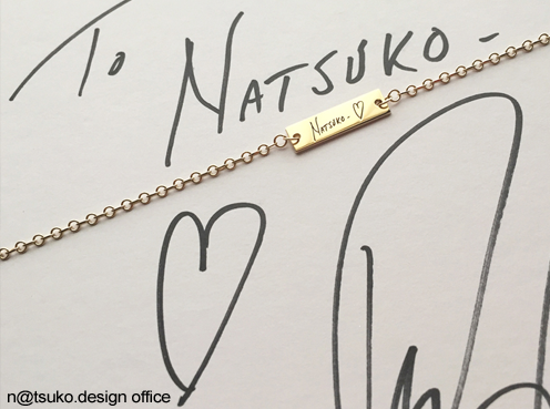 3人のお気に入りのアーティストからもらった直筆のサインとご依頼者のお名前を彫ったファン・ジュエリーです。