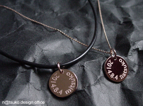 直径13mmのラウンドに私たちの名前と誕生日を彫りました。