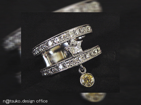 センターに5pcsのマーキスをセットしたヴォリュームリング。