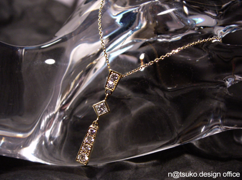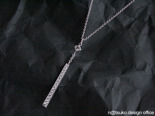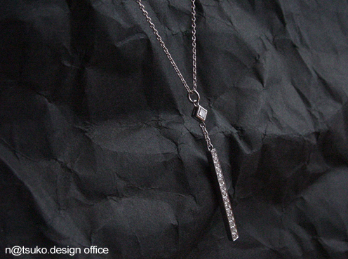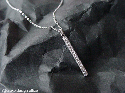 プラチナの細い角棒の全面にメレーを留めたペンダントトップ。