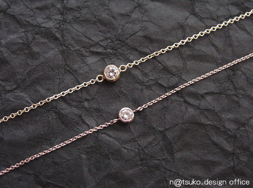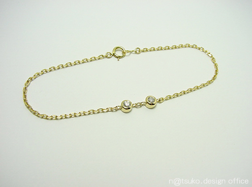 ダイア(上0.2ct、下0.1ct)をひと粒使ったブレスレットです。 細めのチェーンで繊細な雰囲気を出しました。 2009.10.17 update