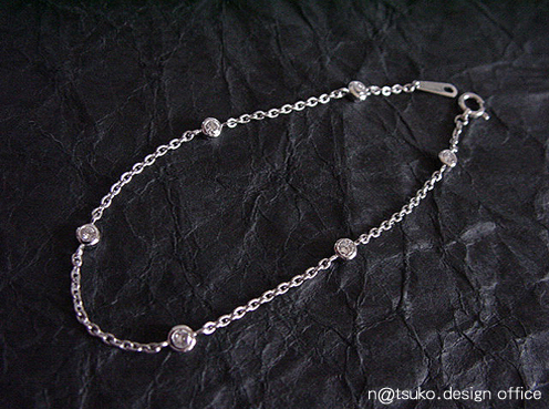 ひと粒0.05ctと小粒のダイア6石で作ったステーション・ブレスレット。 あえてやや太めのチェーンを選び、ヴォリュームを出しました。 2011.9.27 update