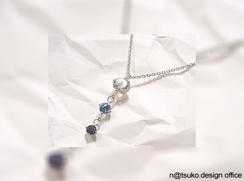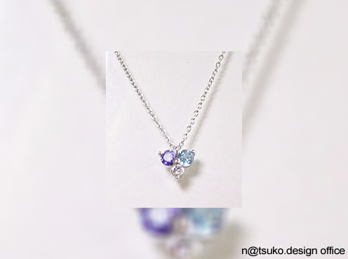 サファイア、ブルートパーズ、タンザナイト、ブラウンダイアモンドを使ったステーションネックレス。