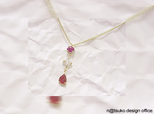 Kさんの2色のルビーでネックレスをデザインしました。