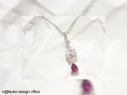 ダイアモンド、クンツァイト、ピンクトルマリンを列ねたペンダントトップ。
