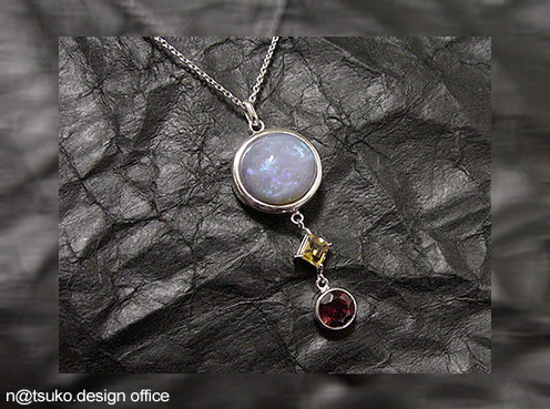 Tさんのオパールに、シトリンの黄色とガーネットの赤をプラスした、カラフルなペンダント。