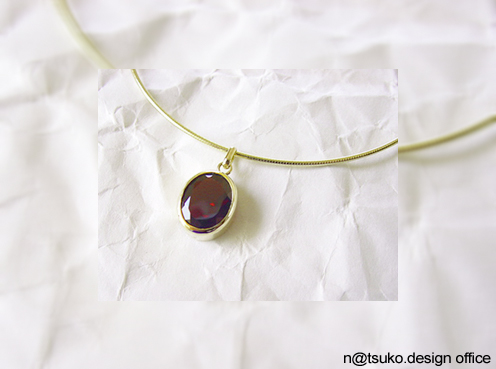 大粒のガーネットがワイヤーネックとの出逢いでスタイリッシュに生まれ変わりました。