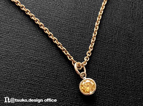 こちらはイエローダイアをゴールドの枠に留めたもの。