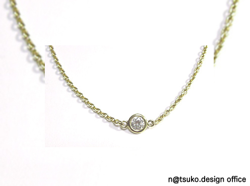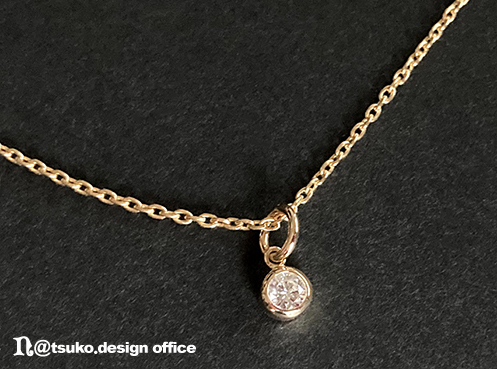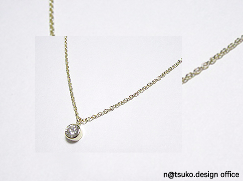 フクリン枠にチェーンを貫通させた1ctダイアのネックレス。