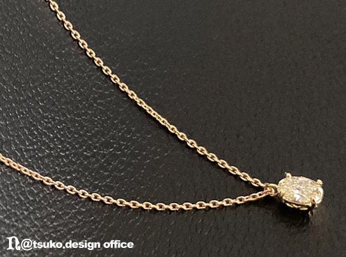 0.4ctのオーバルカットをイエローゴールドの石枠に留めたネックレス。