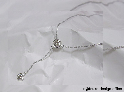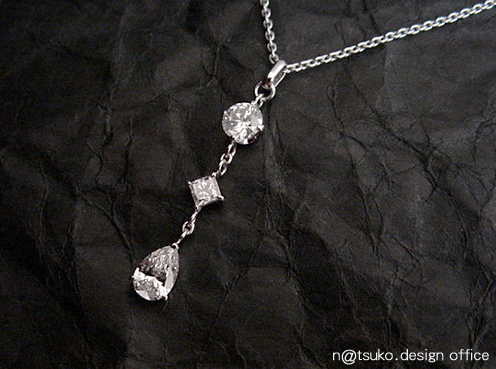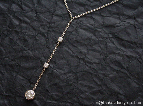 プリンセスカットと1ctダイアを組み合わせたロングネックレス。