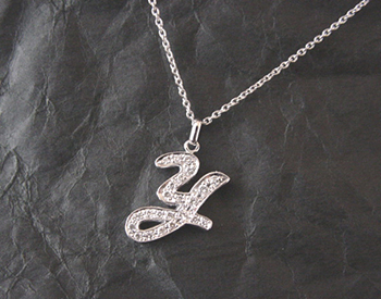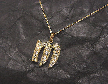 M子さんがご自分のお誕生日記念に作られたイニシャルペンダント。