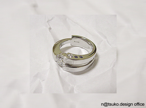 やわらかくクロスさせたアームに、0.3ctのダイアを留めたMさんのリング。