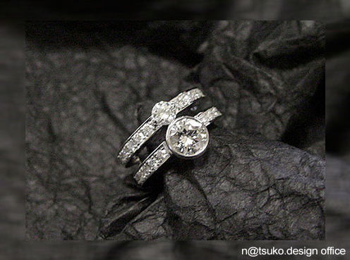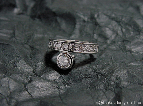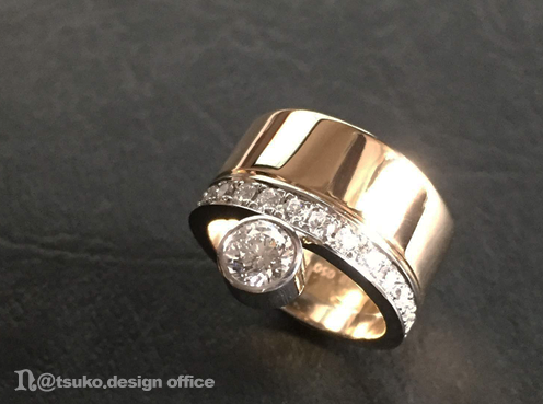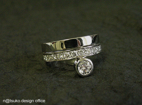 4mm幅のハーフエタニティとひと粒ダイアのコラボレーション。