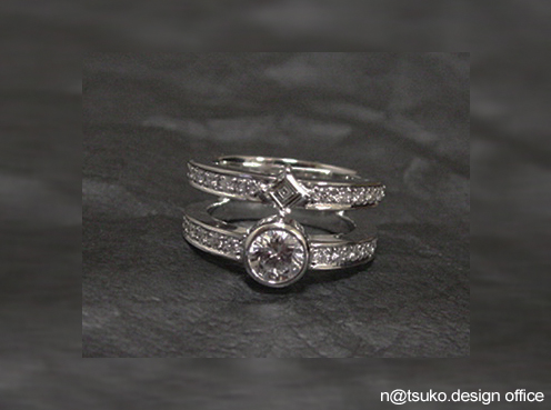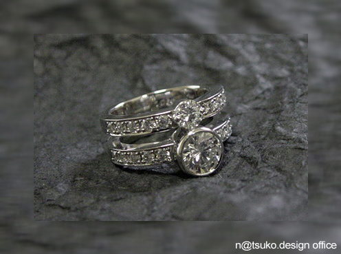 1ctと0.25ctの2本の立爪リングを、ひとつのリングにしました。
