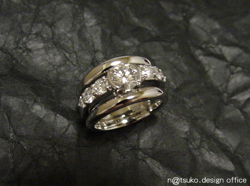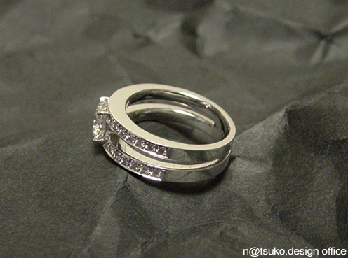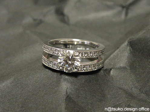 Sさんの立爪に上質のメレーをプラスしてデザインしたダイアモンドリング。