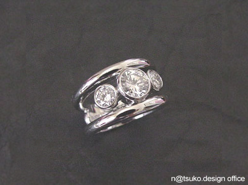 1ctの両サイドに3mm大のダイアを配しました。