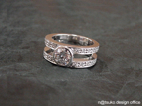 リング2本分のダイアを余すことなく使ったヴォリュ−ムたっぷりのリングです。