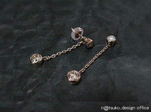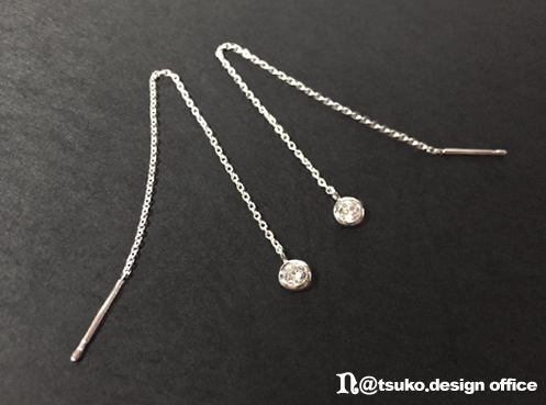 0.05ct×0.1ct×0.3ctのロングピアス。