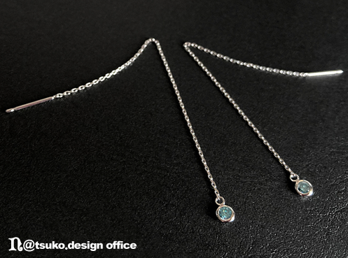0.1ct×0.1ctのブルーダイアモンドでお作りしたアメリカンピアス。