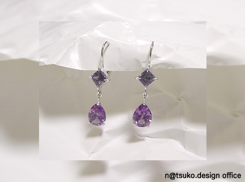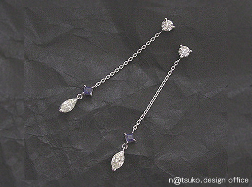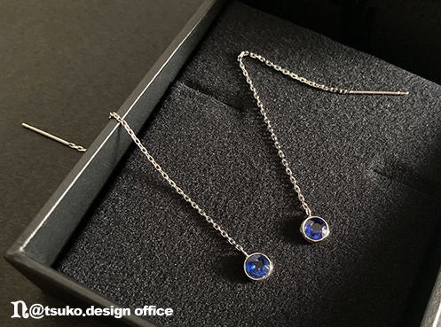 N子さんのふたつのスタッドピアスを、サファイア入りのロングピアスに変身させました。