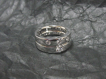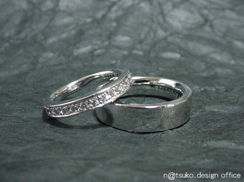 細身のハーフエタニティとフラットリングのペア。