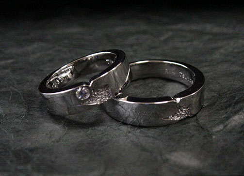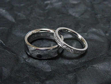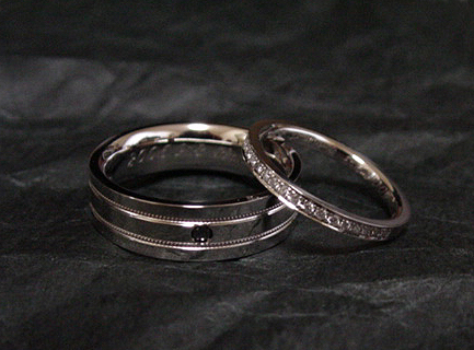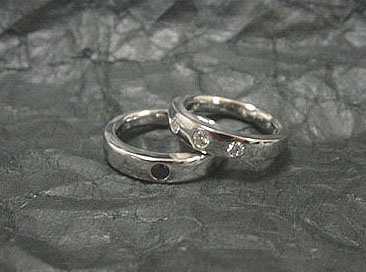 女性にはホワイトダイアを3石、男性用にはブラックダイアを留めました。