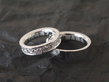 迫力のフルエタニティとシンプルな平打リング。