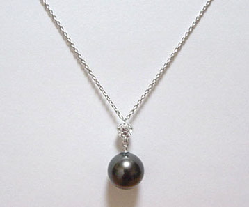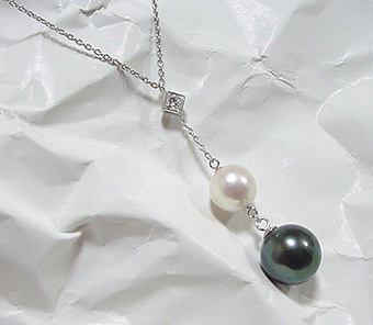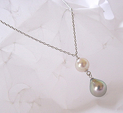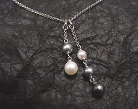 ホワイト、グレー、ブラックのパールを連ねたペンダントトップ。