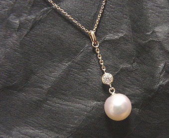 チョーカーから取った両穴のパールを連ねた、S子さんのペンダント。