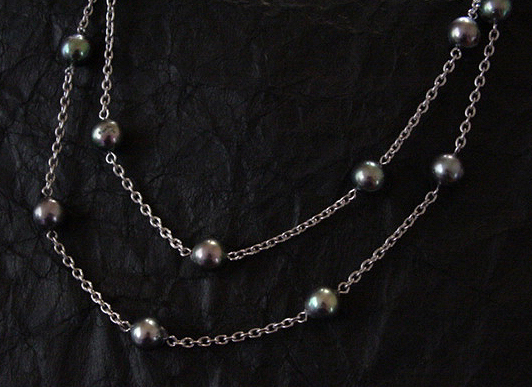 ホワイトパールにブラックパールを連ねて、モノトーンのシックなネックレスにしてみました。