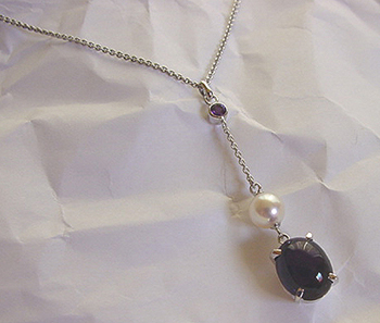 バフトップカットのアメジストに、6mmのパールをあしらいました。