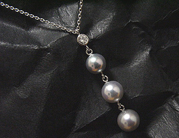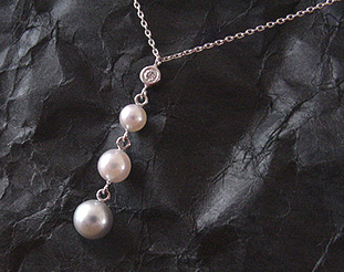 2粒のベビーパールに6.5mmのグレーパールをプラスしたネックレス。