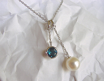7.5mmのパールと、5mmのロンドンブルートパーズ。