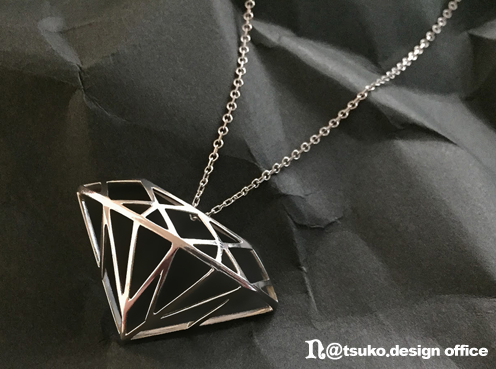 ダイアモンドのファセットを細い線で立体的に表現しました。